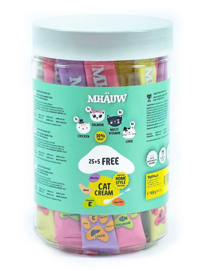 Mhauw Tavuklu Somonlu Ciğerli ve Multi Vitaminli Karışık Kedi Maması 30x15 Gr Tüm Kediler İçin 4 Çeşit Karışık Kedi Ödülü İnsan Sağlığına Uygundur Human Grade