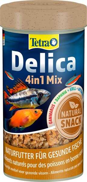Tetra Delica Mix, içerdiği %29 Daphnia Su Piresi, %18 Salamura Karides, %29 Krill ve %24 Gammarus ile tüm tropikal balıklar ve diğer etçil beslenen balıklar için son derece zengin bir ek besindir.